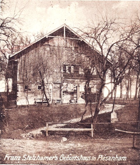 Der Stelzhamerbund wurde am 15. August 1882 von Dr. Hans Zötl, Dr. Anton Matosch und Dr. Hans Commenda gegründet. Wichtigstes Anliegen war die Erhaltung von Franz Stelzhamers Geburtshaus in Großpiesenham, Gemeinde Pramet. Denn das “Vadernhaus” mit dem “Muadastübl” war damals vom Verfall bedroht. (Bild: Stelzhamerhaus vor 1910 / Sammlung Markus Edtbauer)